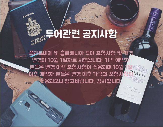 [공지_가격변경] 플리트비체/슬로베니아 일일투어 가격변경 안내(2016.10.01 시행)