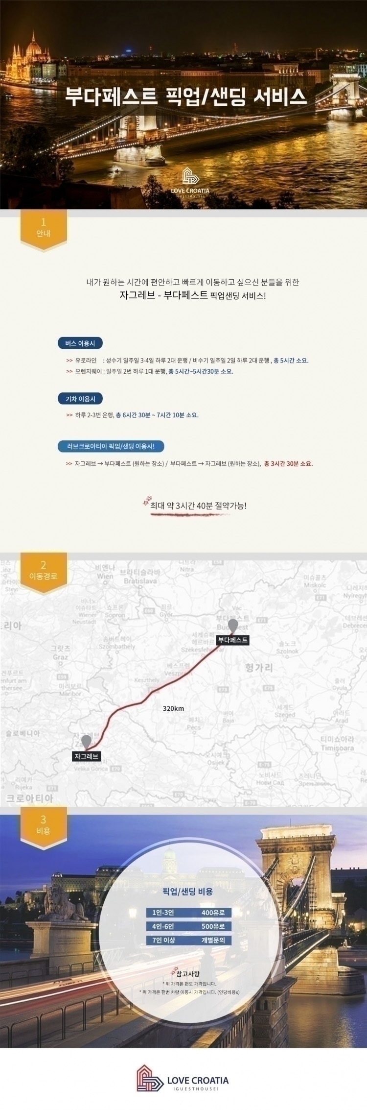 자그레브 - 부다페스트 픽업 및 샌딩 서비스를 오픈 합니다.