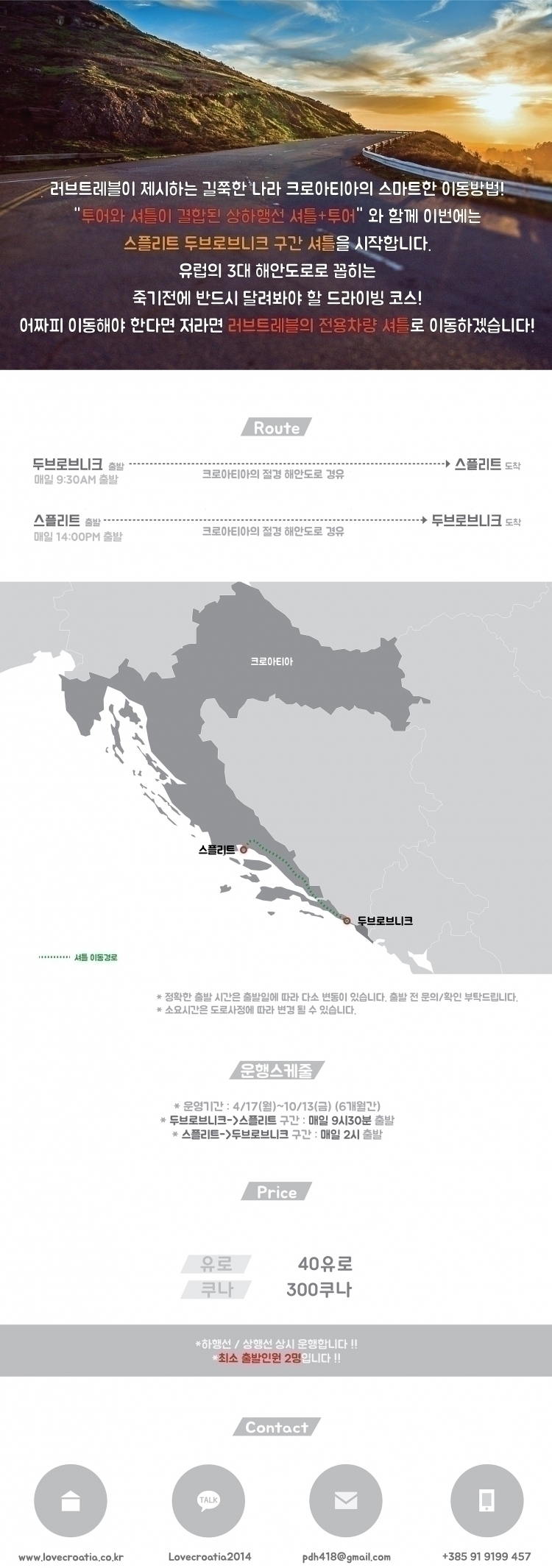 ★셔틀 안내★ 두브로브니크에서 스플리트/스플리트에서 두브로브니크 구간